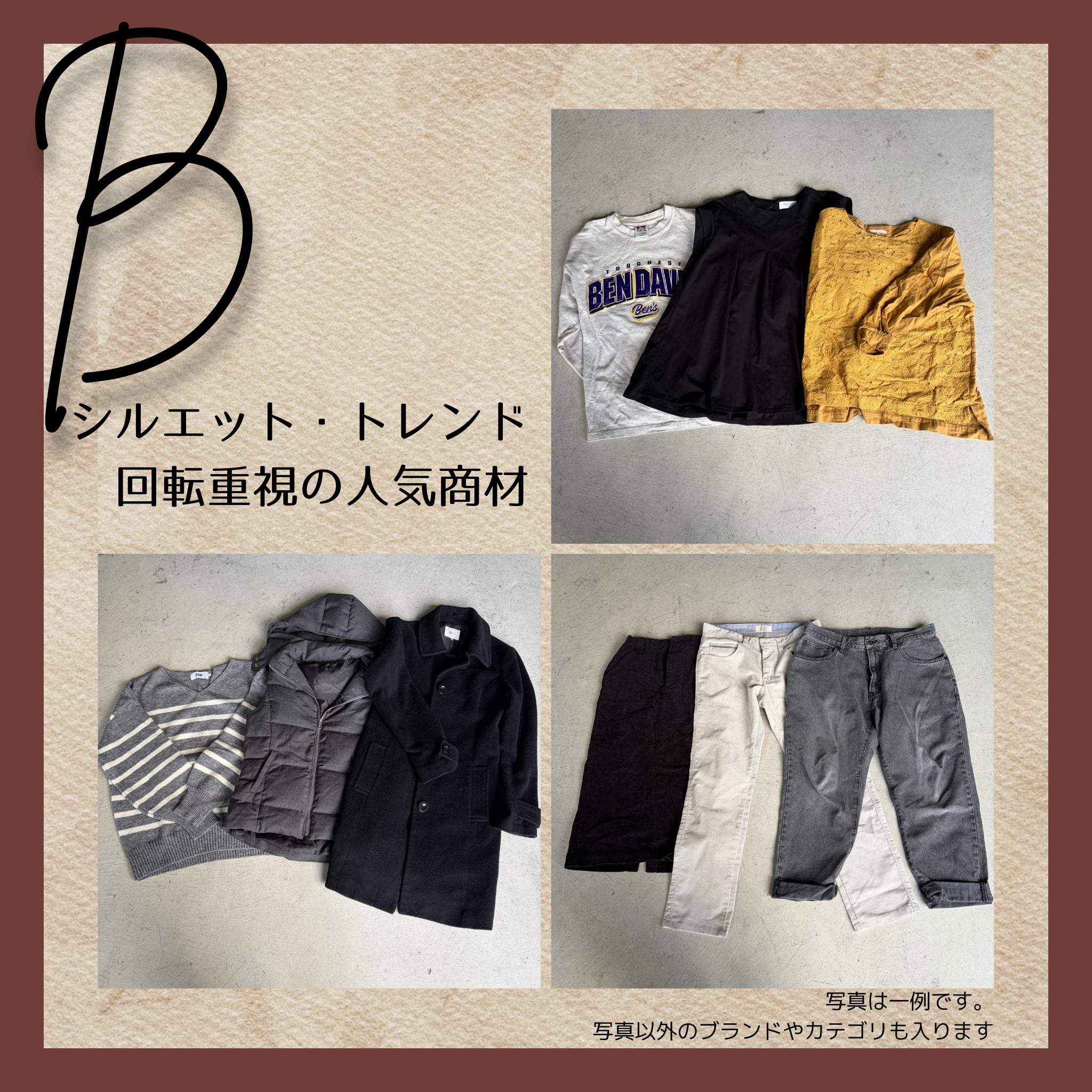 Oランク→デザインやシルエットで選ばれたノーブランド(※実は倉庫でも一番売れる商材)